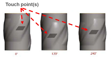 Each of the contact points on the GeoGLIDER®XTREME are 120 degrees offset circumferentially and 1.5 inches offset from centre-to-centre axially. Each contact area is ~ 1.6 sq-in in area.